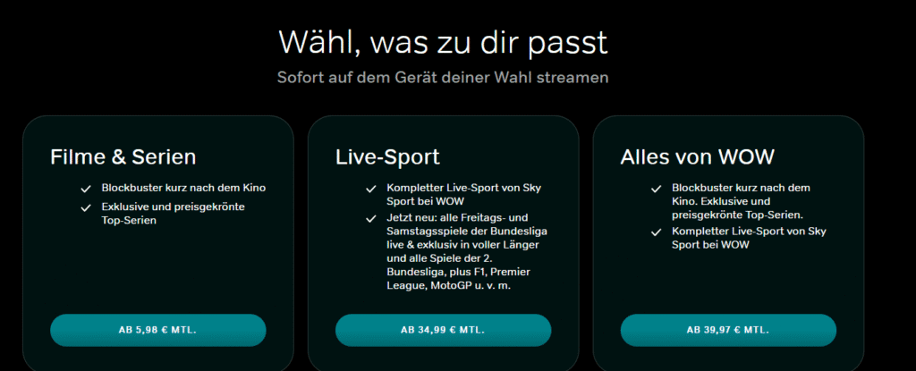 Die Stärke von WOWTV.de liegt in der Vielfalt. Von Blockbustern und exklusiven Sky Originals über preisgekrönte HBO-Serien bis hin zu Live-Sport-Events bietet die Plattform Unterhaltung auf höchstem Niveau.